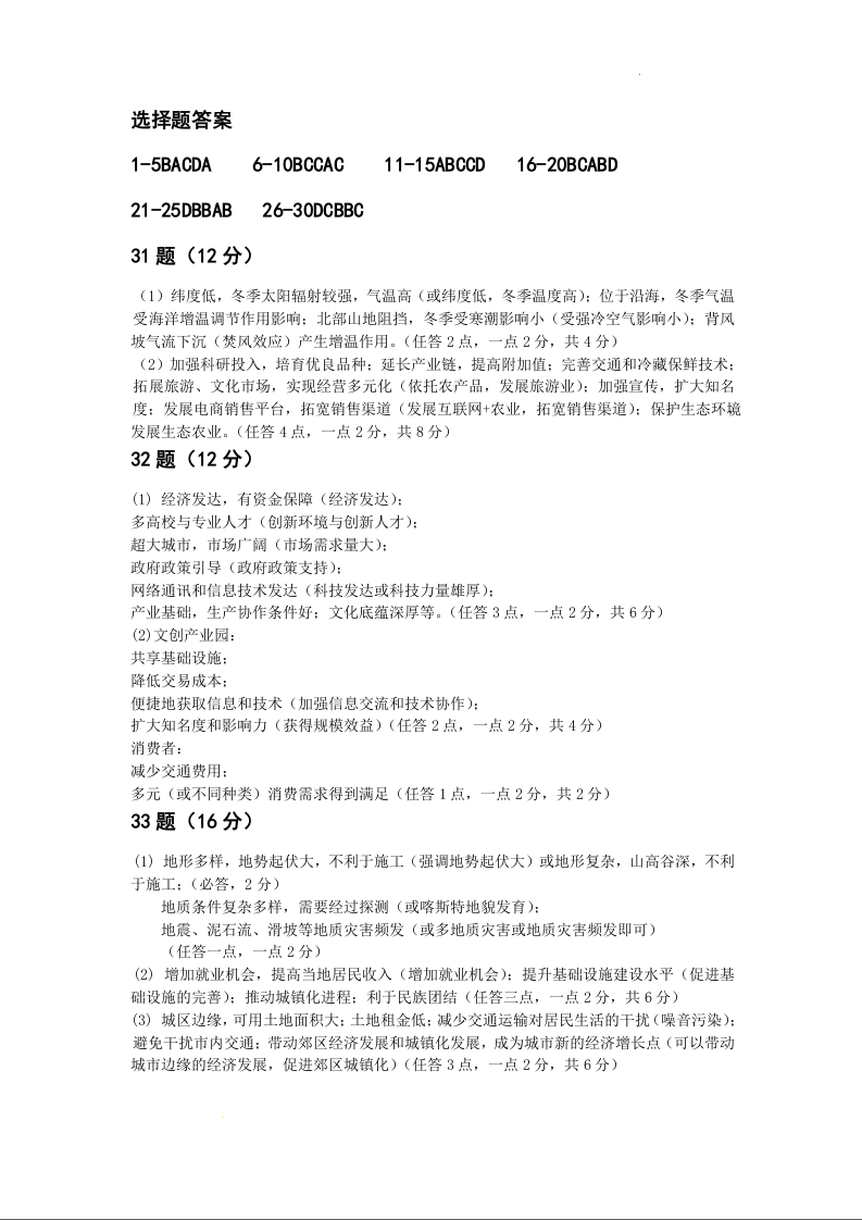 江苏省南京市六校联合体考试2023-2024学年高一下学期5月期中考试地理答案