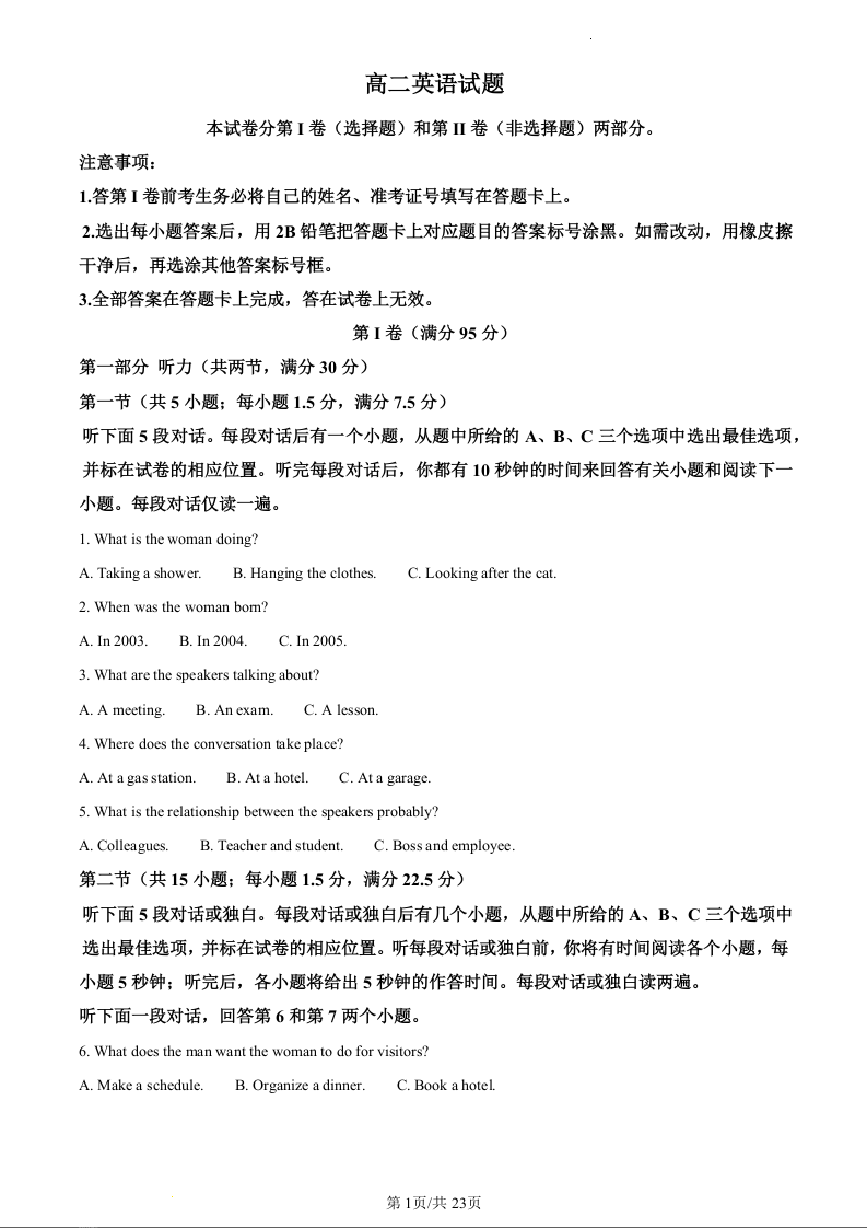 山东省德州市2023-2024学年高一下学期期中考试英语(精品解析版)