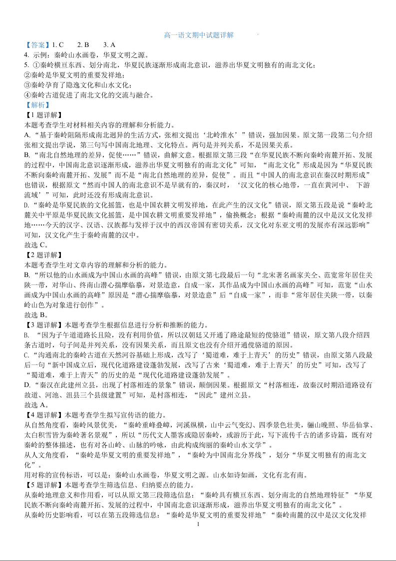山东省济宁市第一中学2023-2024学年高一下学期5月期中测试语文答案