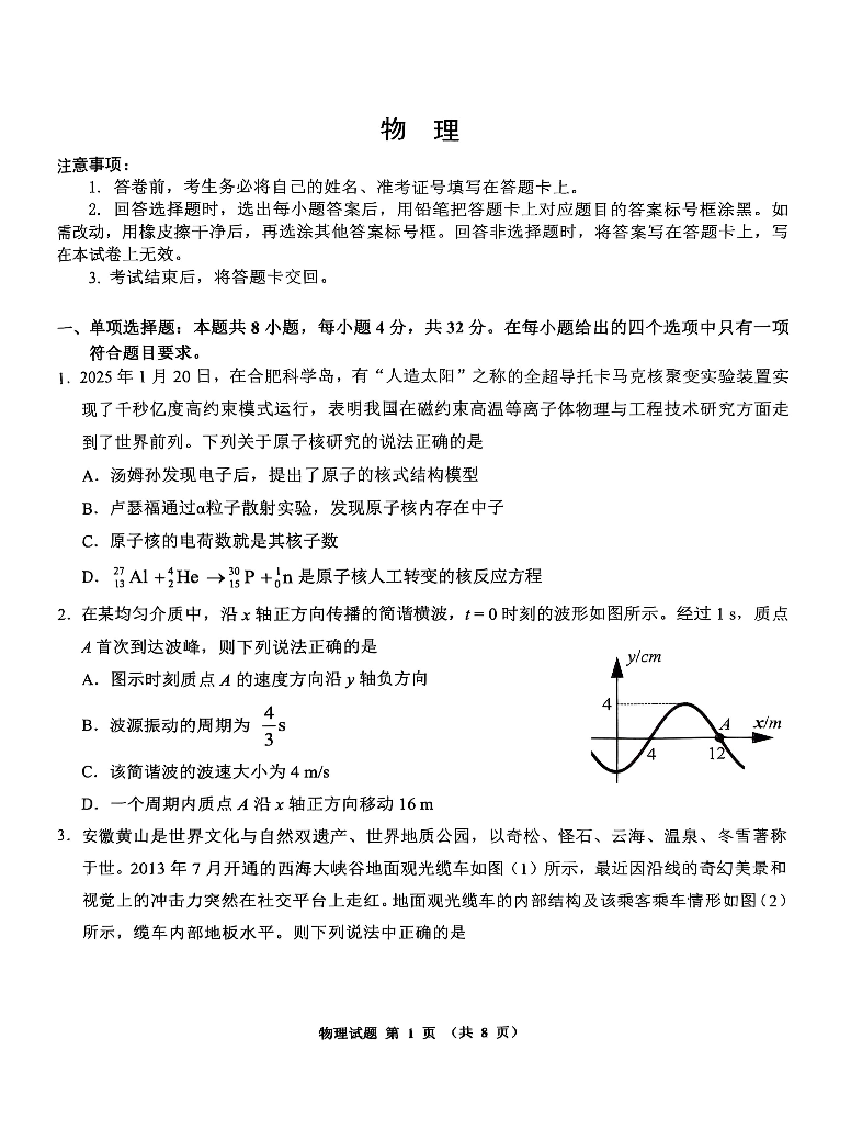 安徽省江南十校2025届高三下学期第一次联考物理