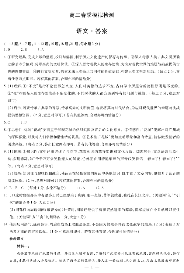河南省天一大联考2025届高三3月春季模拟检测语文答案
