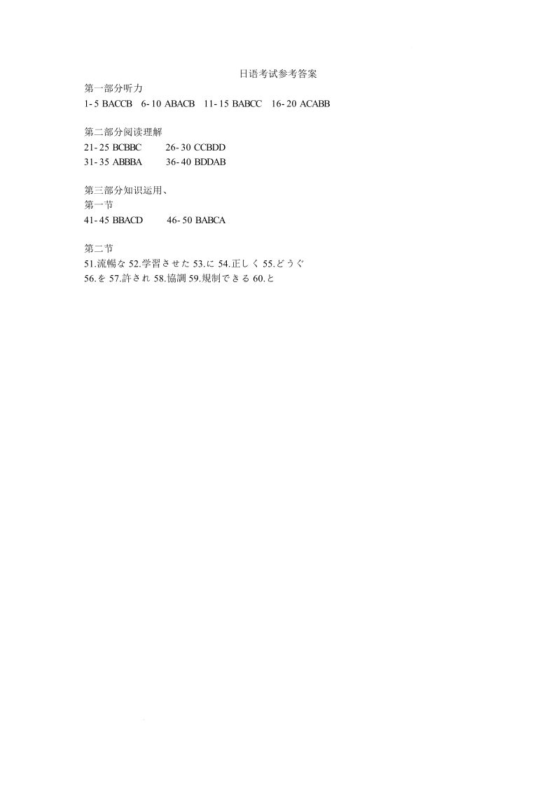 河南省天一大联考2025届高三3月春季模拟检测日语答案