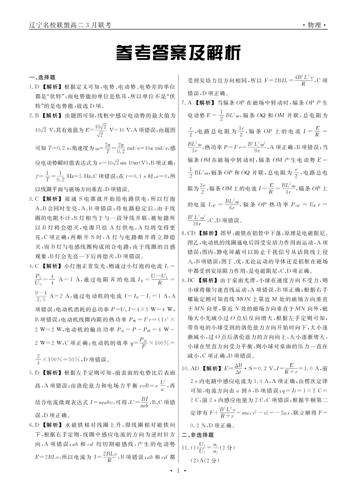 辽宁省名校联盟2024-2025学年下学期3月高二联合考试物理答案