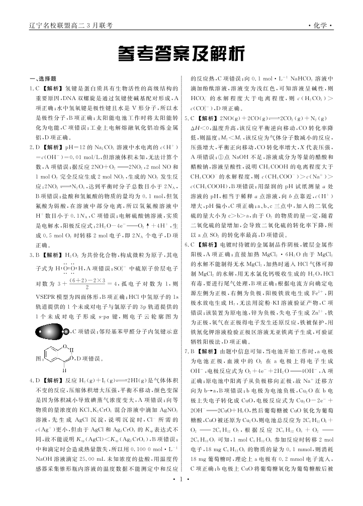 辽宁省名校联盟2024-2025学年下学期3月高二联合考试化学答案