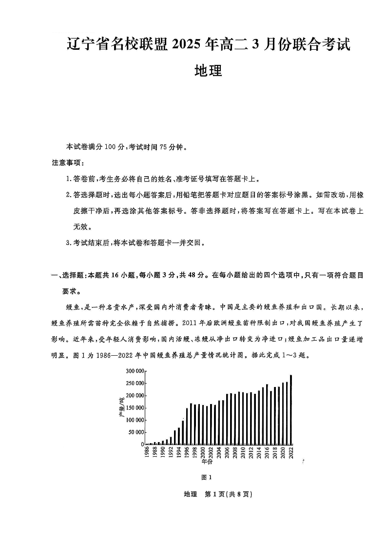 辽宁省名校联盟2024-2025学年下学期3月高二联合考试地理