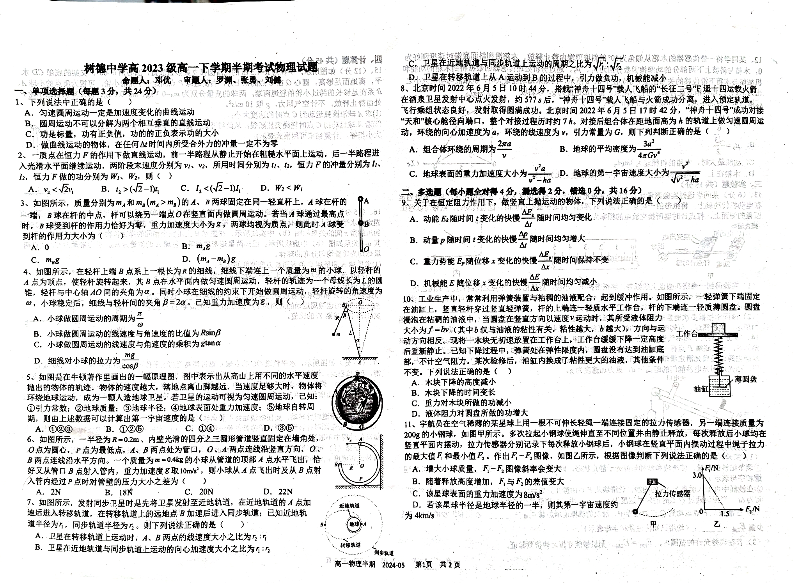 四川省成都市树德中学2023-2024学年高一下学期5月期中考试物理