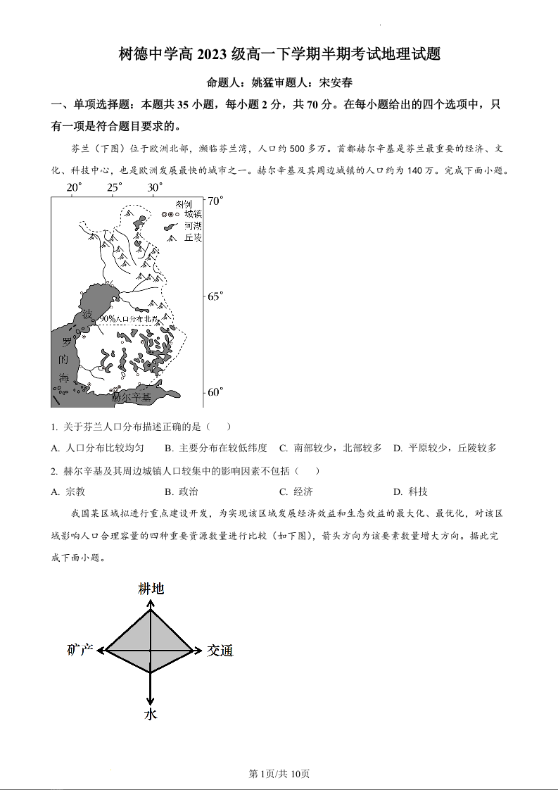 四川省成都市树德中学2023-2024学年高一下学期5月期中考试地理(原卷版)