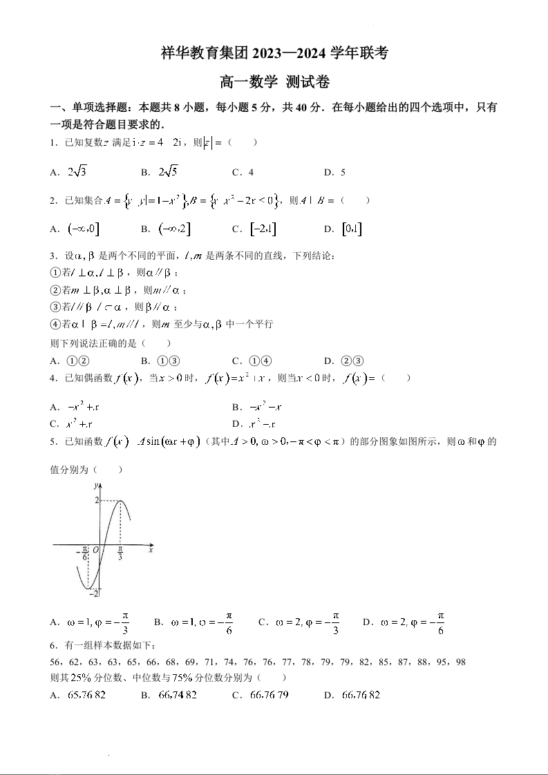 云南省四校联考2023-2024学年高一下学期5月月考数学