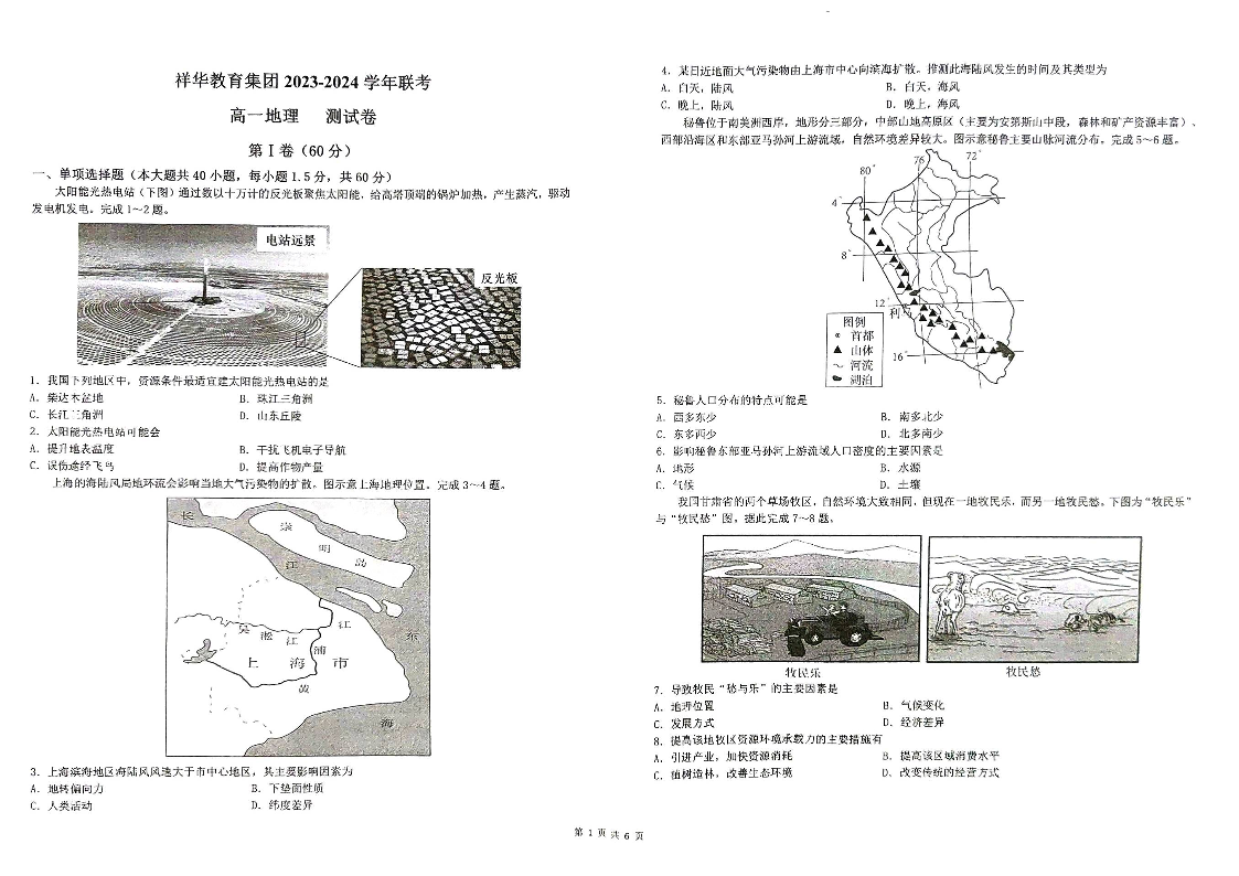 云南省四校联考2023-2024学年高一下学期5月月考地理