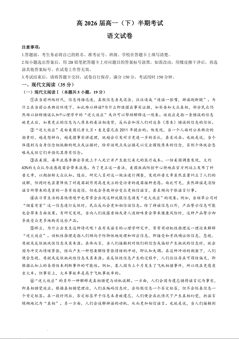 重庆市巴蜀中学校2023-2024学年高一下学期5月期中考试语文+答案