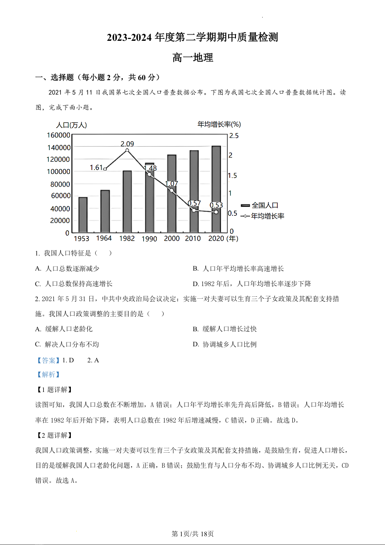 甘肃省武威市凉州区2023-2024学年高一下学期期中质量检测地理(精品解析版)