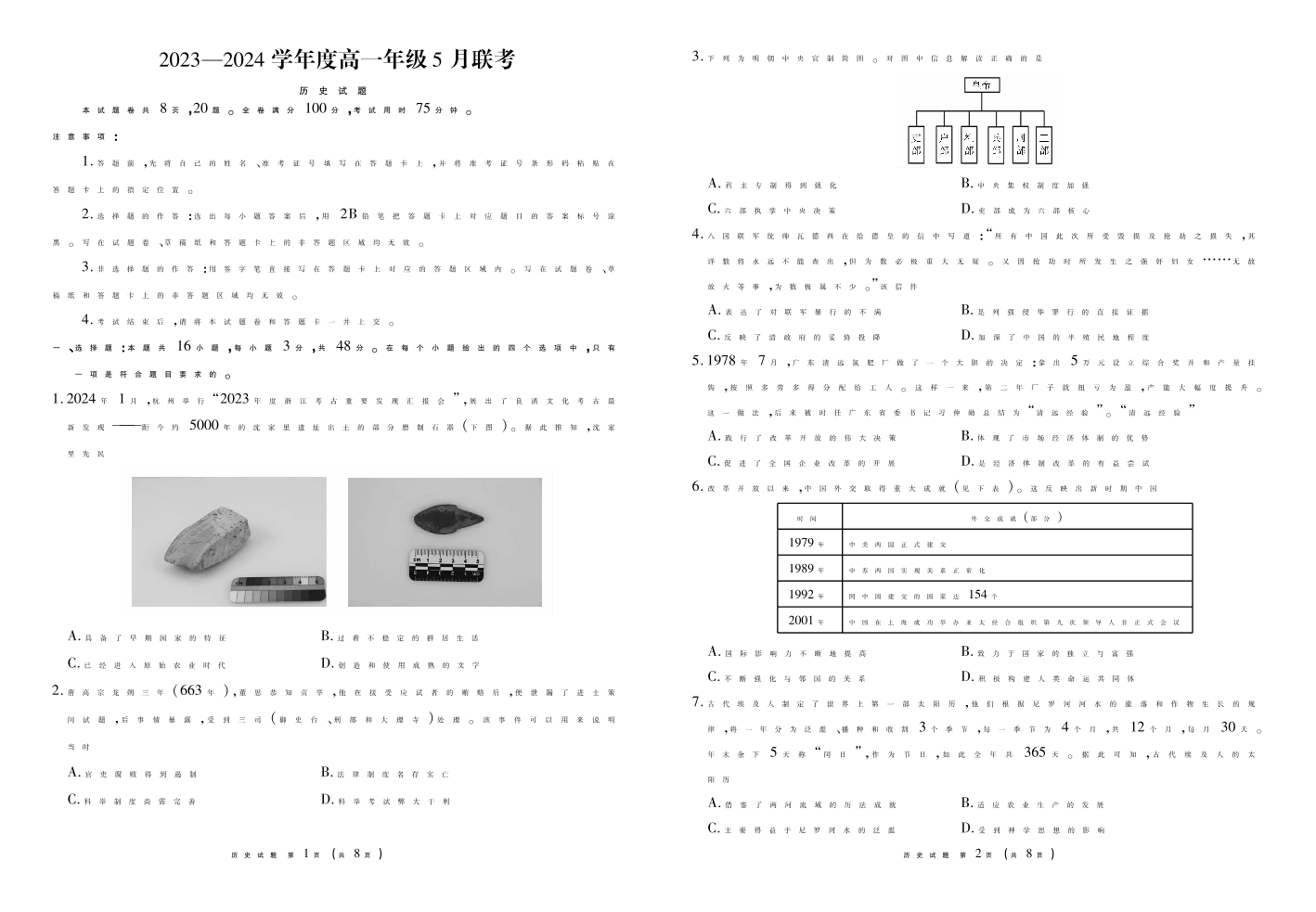 广东省河源市部分学校2023-2024学年高一下学期5月期中联考历史