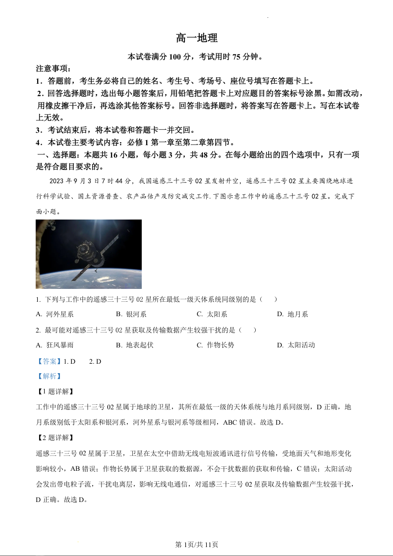 广东省湛江市2023-2024学年高一上学期期中考试地理(精品解析版)