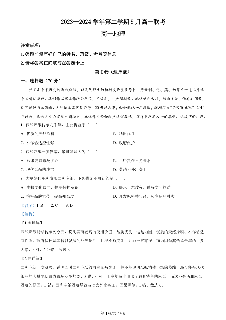 河南省商丘市2023-2024学年高一下学期5月月考地理(精品解析版)