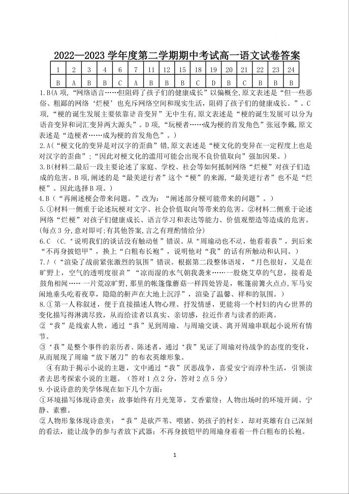 黑龙江省牡丹江市第三高级中学2023-2024学年高一下学期期中考试语文答案