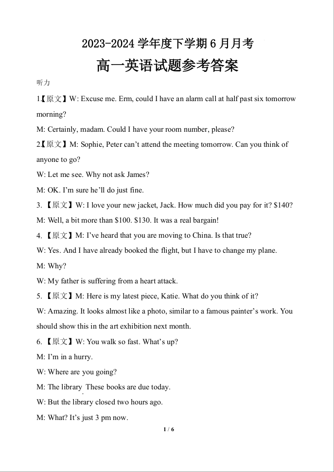 黑龙江省齐齐哈尔市第八中学校2023-2024学年高一下学期6月月考英语答案