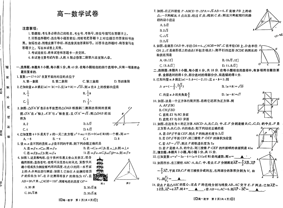 吉林省八校2023-2024学年高一下学期5月期中联考数学