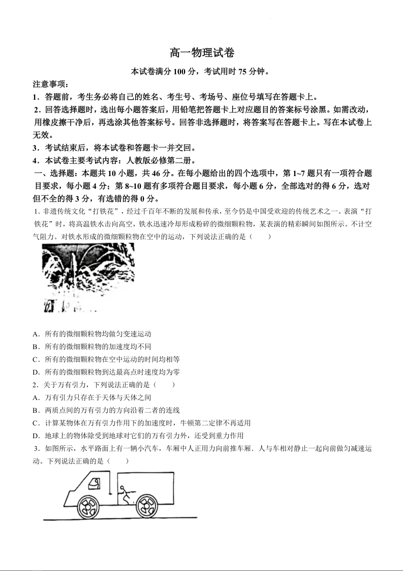 吉林省八校2023-2024学年高一下学期5月期中联考物理+答案