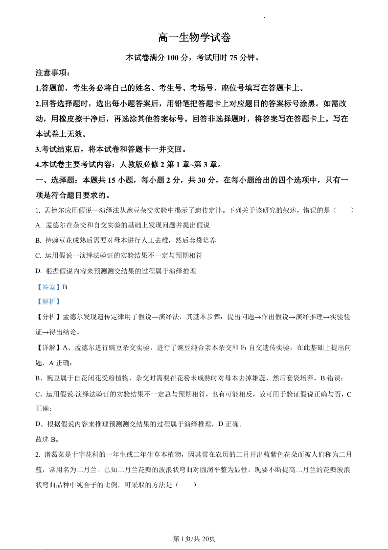 吉林省八校2023-2024学年高一下学期5月期中联考生物(精品解析版)