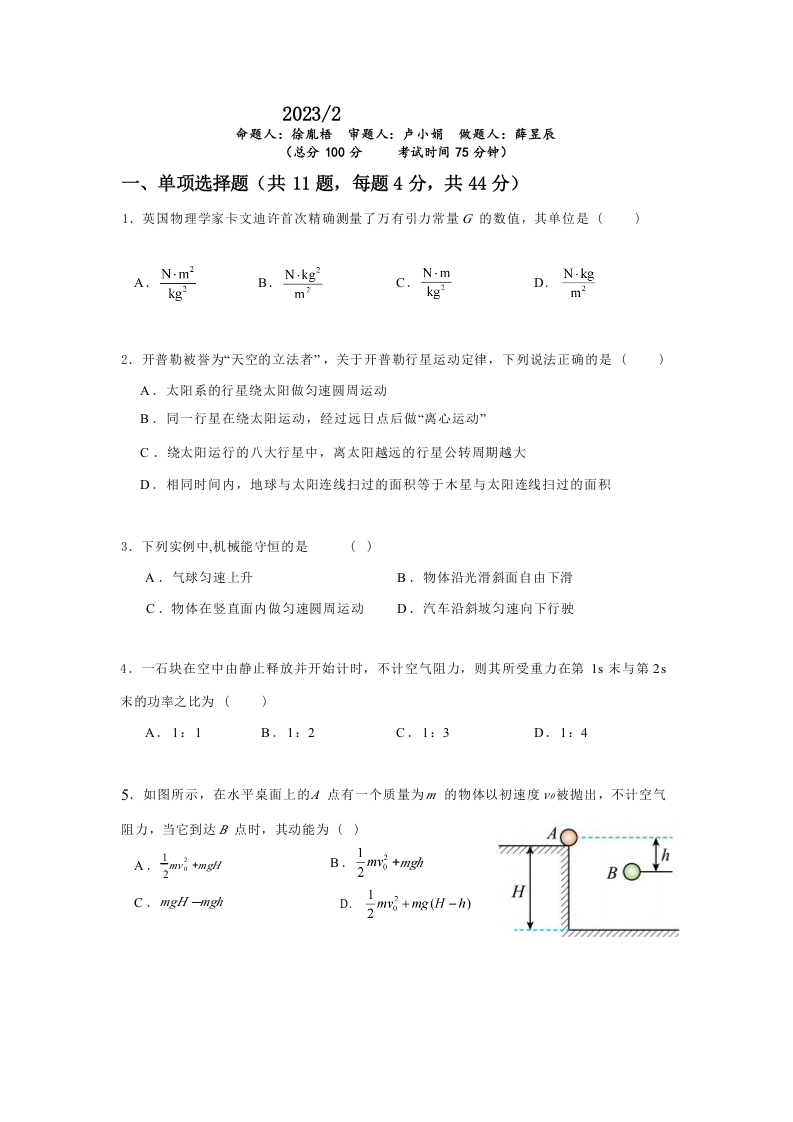 江苏省盐城市五校联盟2023-2024学年高一下学期5月月考物理