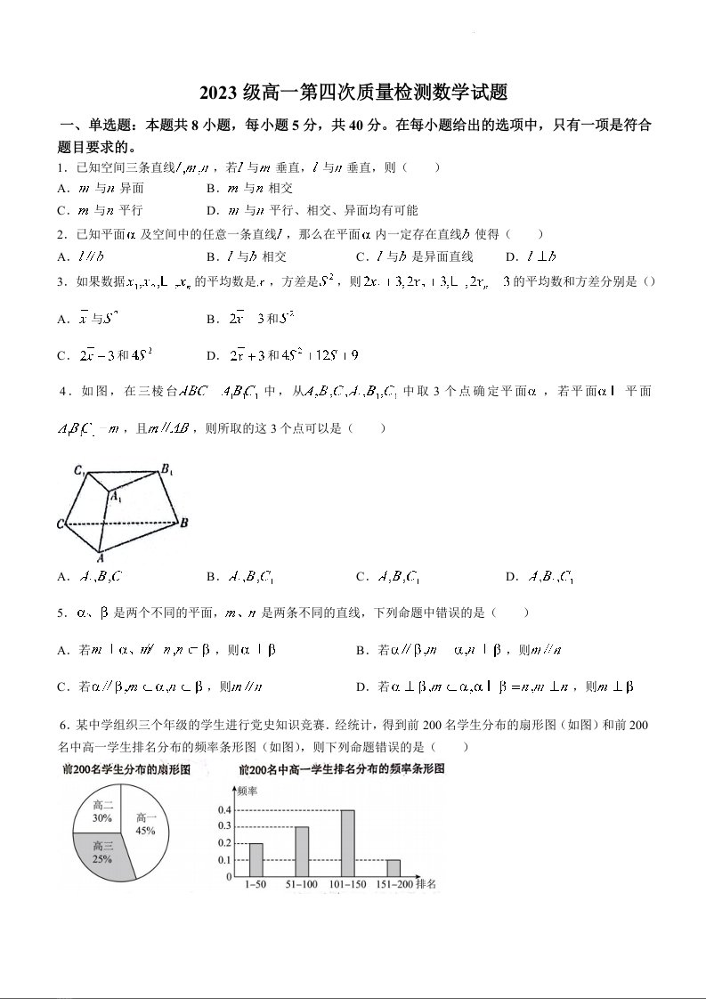 山东省烟台市莱州市第一中学2023-2024学年高一下学期6月月考数学+答案