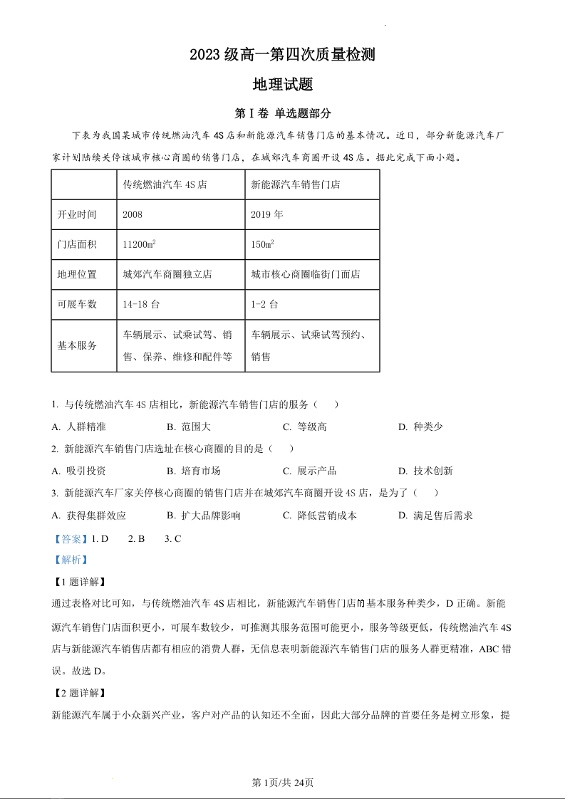 山东省烟台市莱州市第一中学2023-2024学年高一下学期6月月考地理(精品解析版)