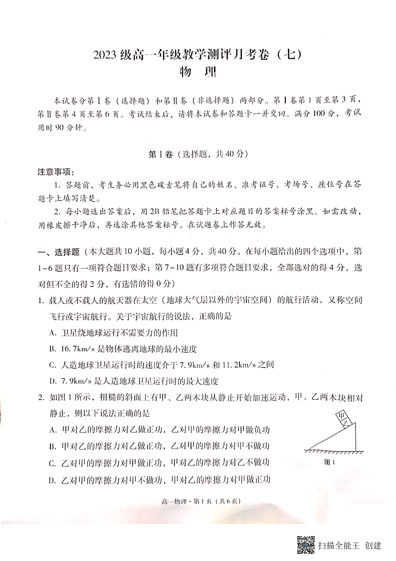 云南省云南师范大学附属中学2023-2024学年高一下学期5月月考物理
