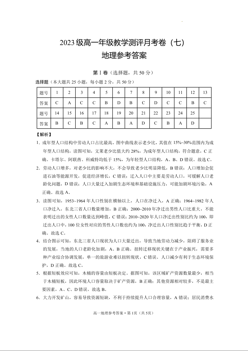 云南省云南师范大学附属中学2023-2024学年高一下学期5月月考地理答案
