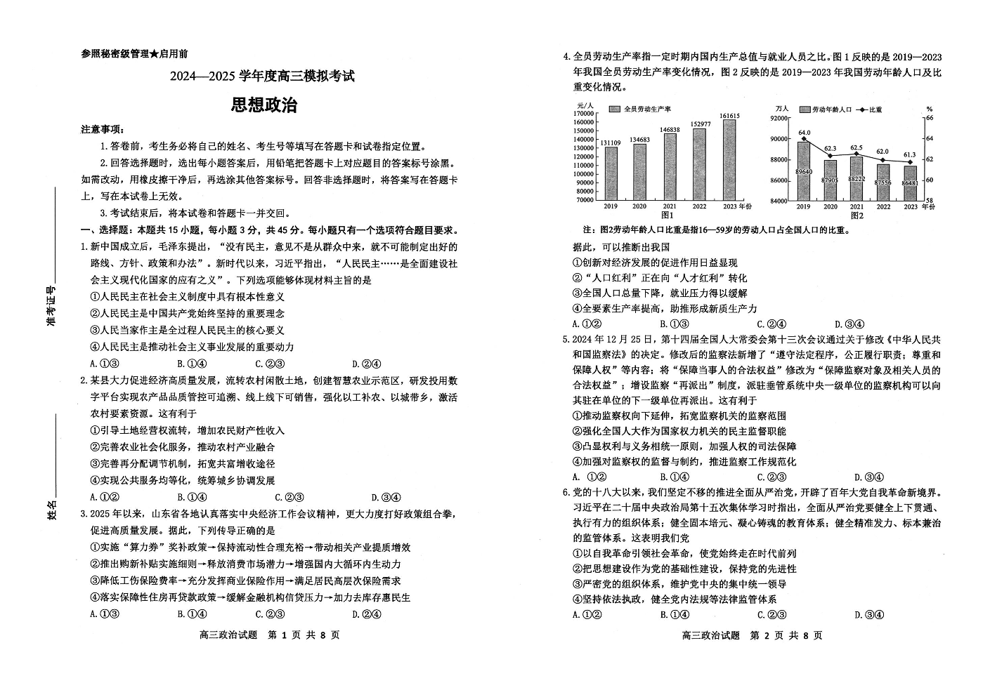 山东省淄博市2024-2025学年下学期3月高三一模统考政治