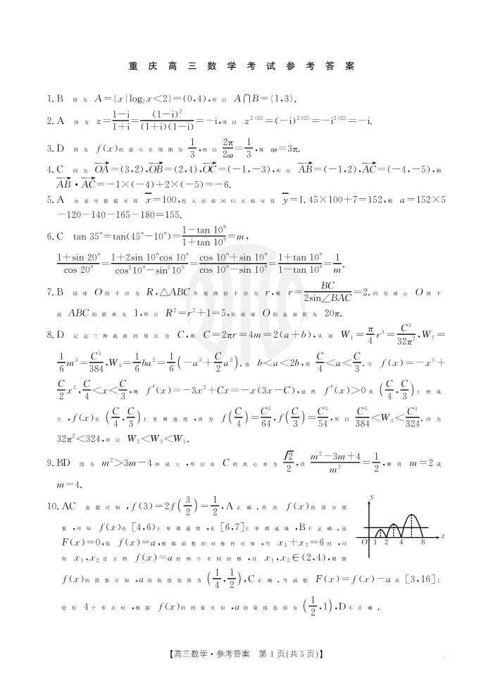 重庆市区域高中2024-2025学年下学期3月高三联考数学答案