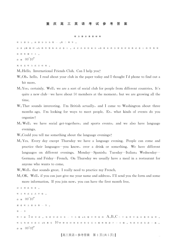 重庆市区域高中2024-2025学年下学期3月高三联考英语答案