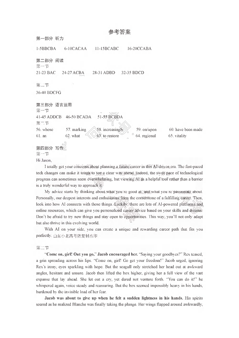 山东省济宁市2024-2025学年下学期3月高三模拟考试(一模)英语答案