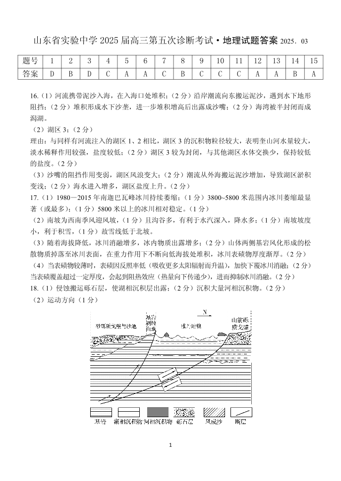 山东省实验中学2024-2025学年下学期3月高三第五次诊断考试地理答案