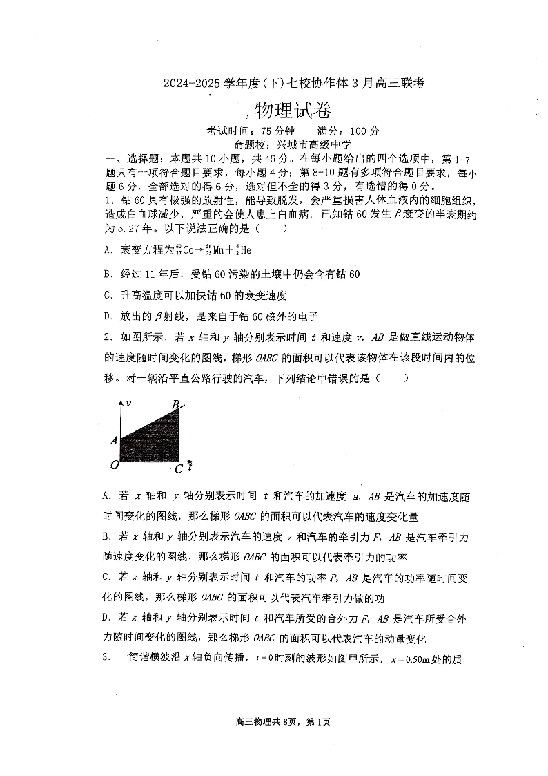辽宁省七校协作体2024-2025学年下学期3月高三联考物理