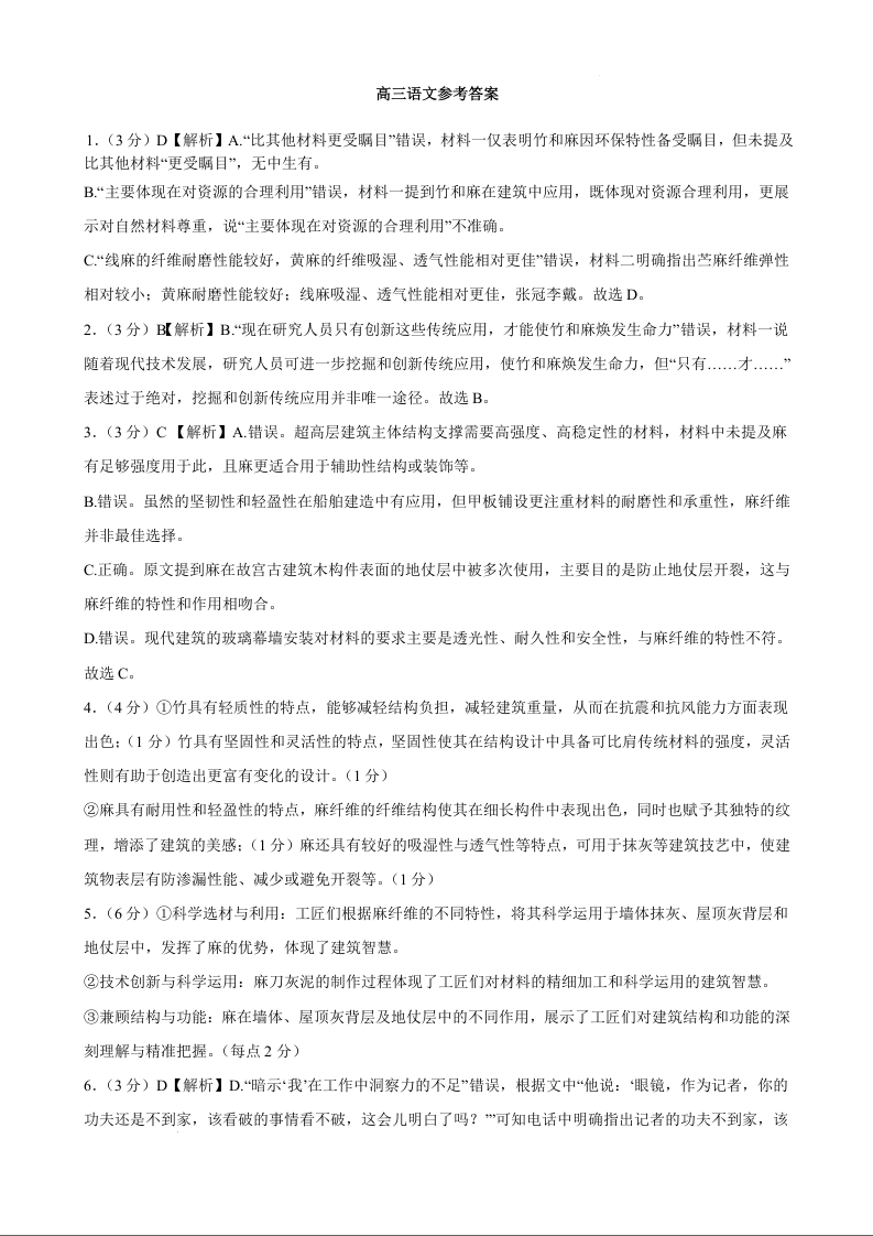 辽宁省鞍山市2024-2025学年下学期3月高三第一次月考语文答案