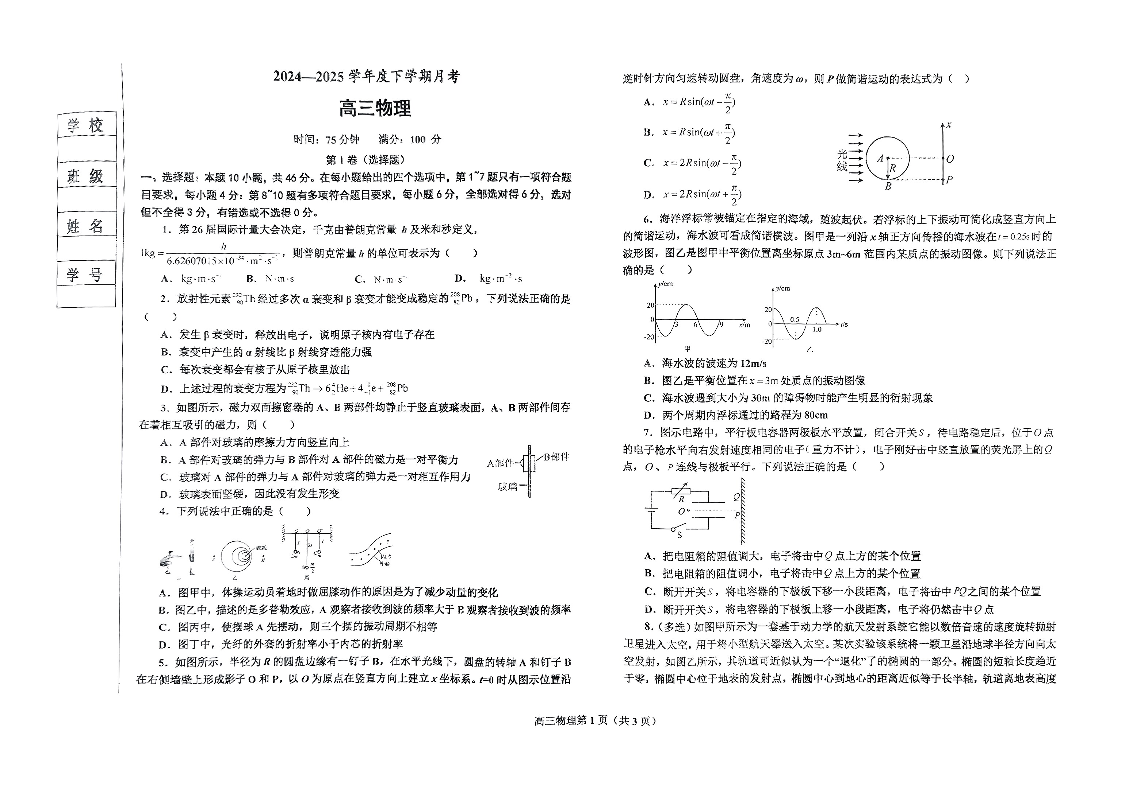 辽宁省鞍山市2024-2025学年下学期3月高三第一次月考物理