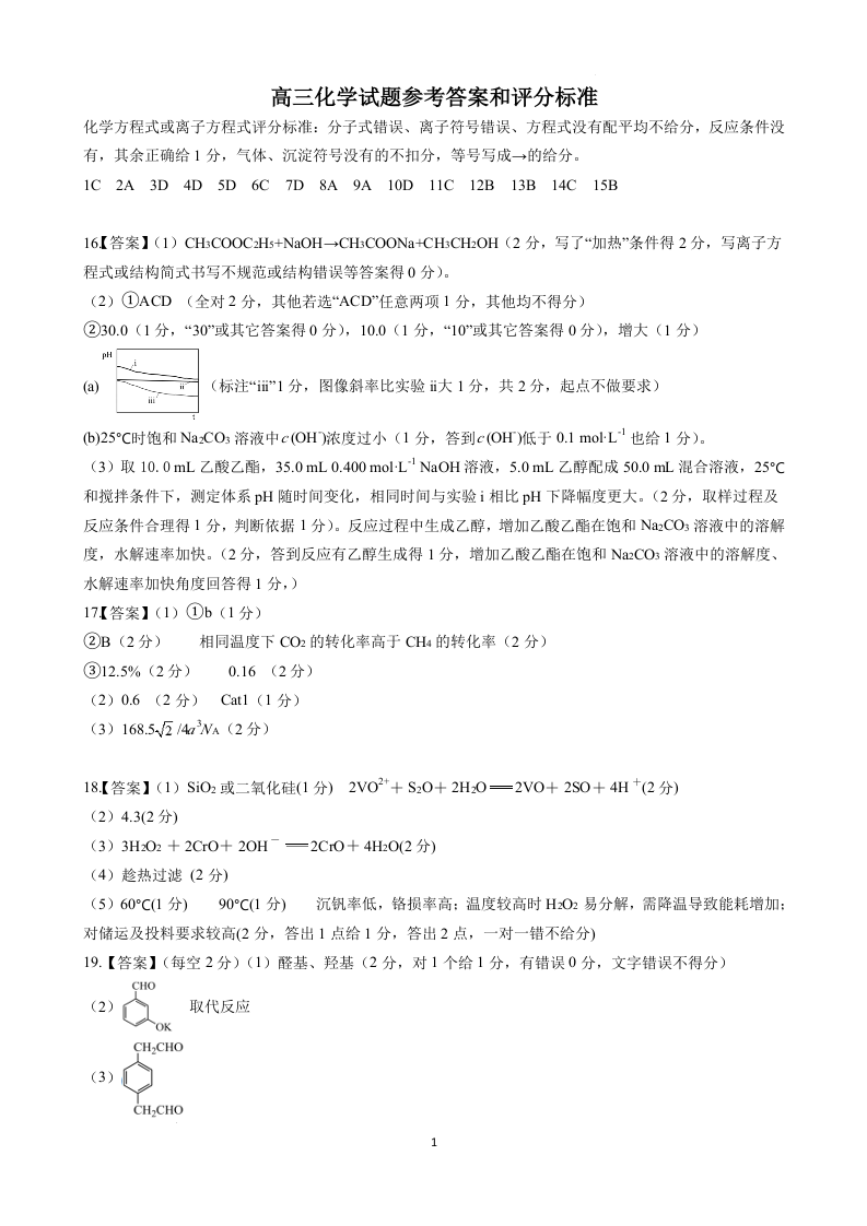 辽宁省鞍山市2024-2025学年下学期3月高三第一次月考化学答案