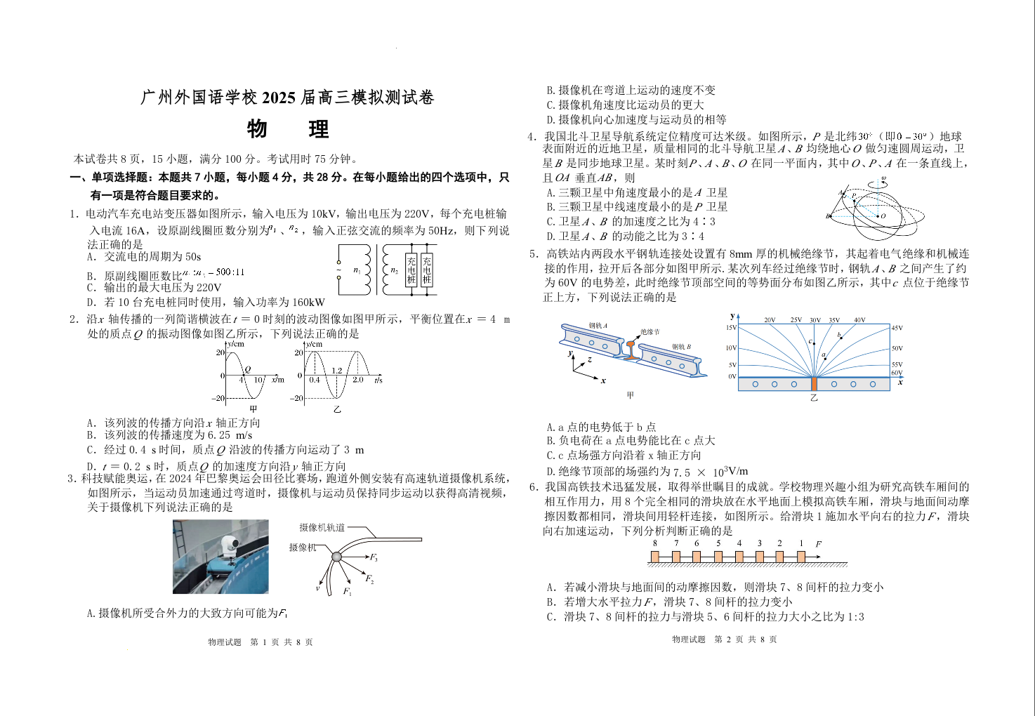 广东省外国语学校2024-2025学年下学期3月高三模拟测物理