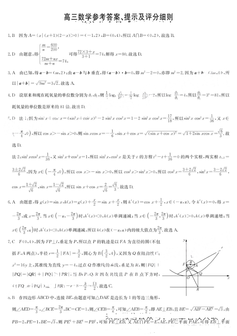 江西省萍乡市2024-2025学年下学期3月高三一模考试数学答案