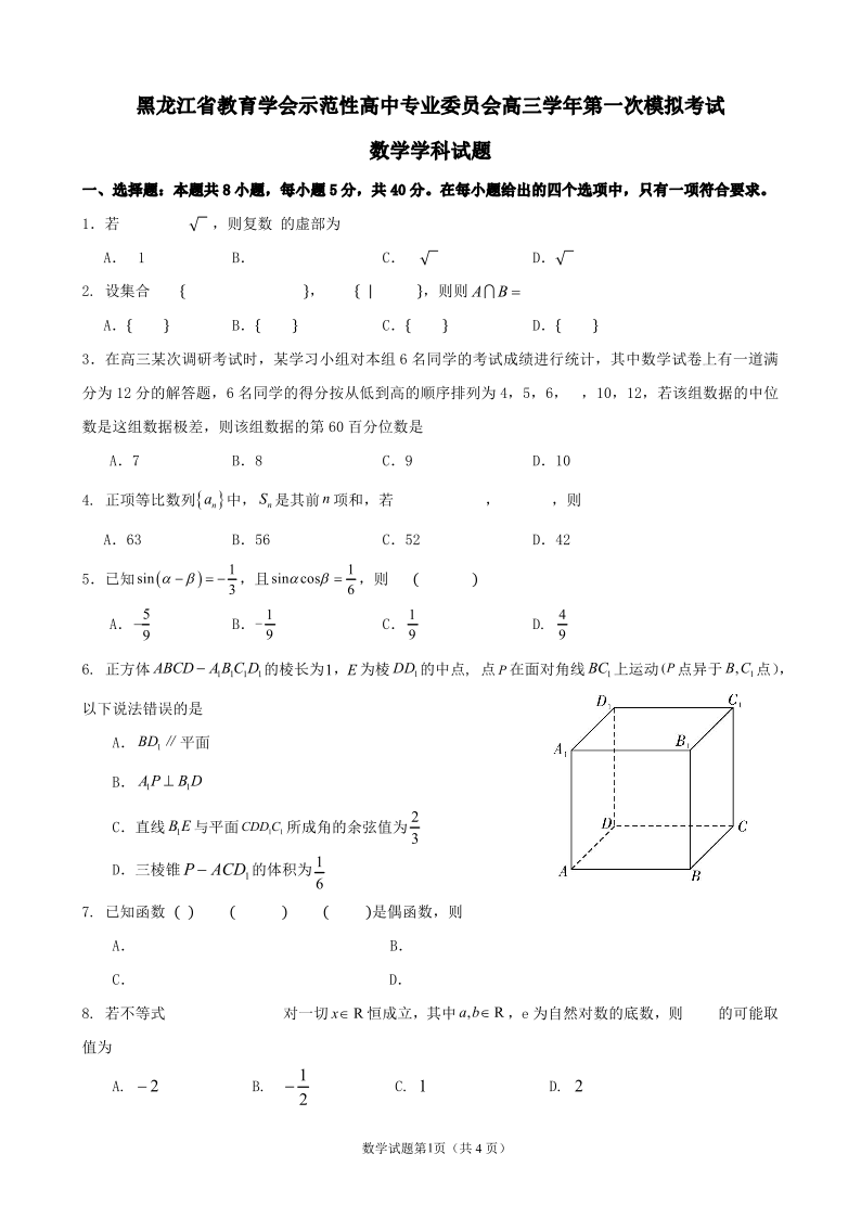 黑龙江省教育学会示范性高中专业委员会2024-2025学年下学期高三第一次模拟数学