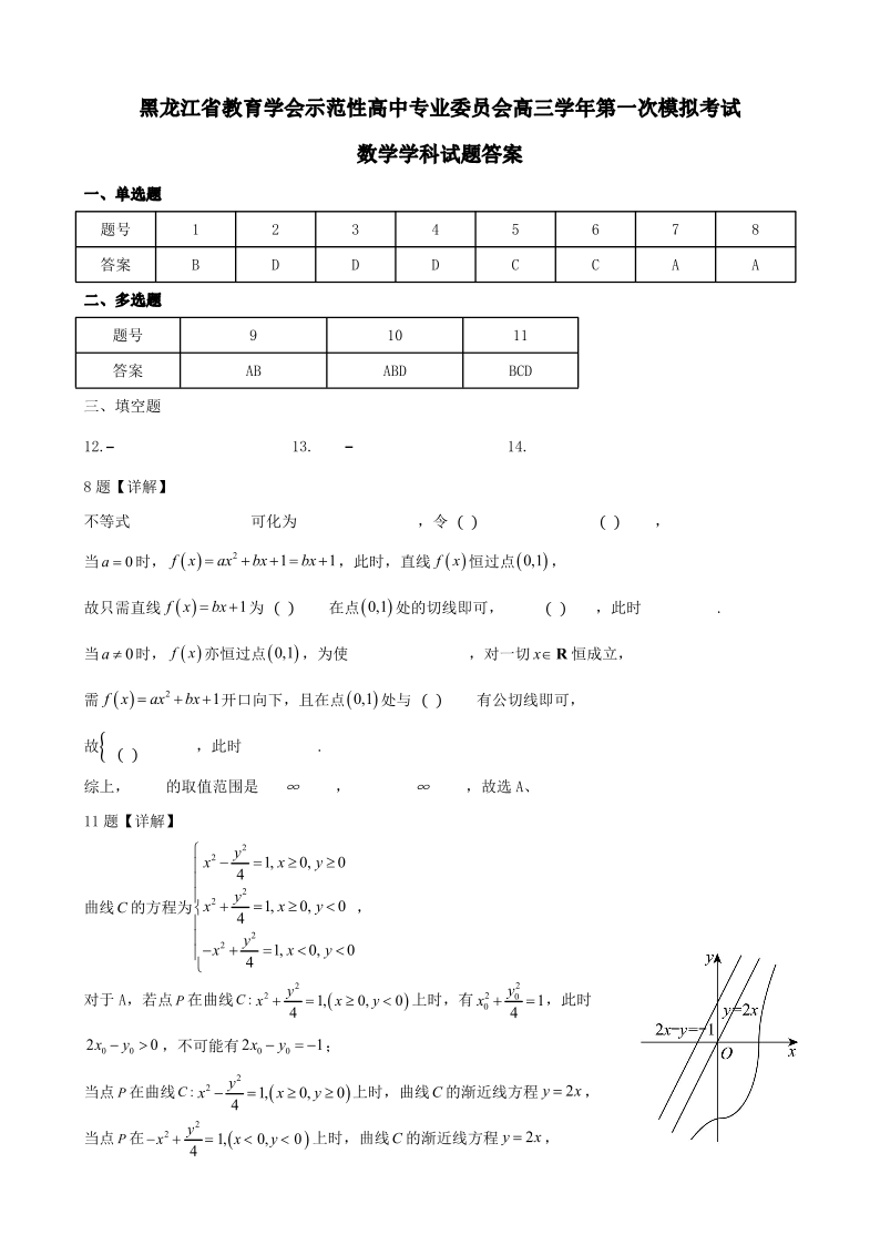 黑龙江省教育学会示范性高中专业委员会2024-2025学年下学期高三第一次模拟数学答案