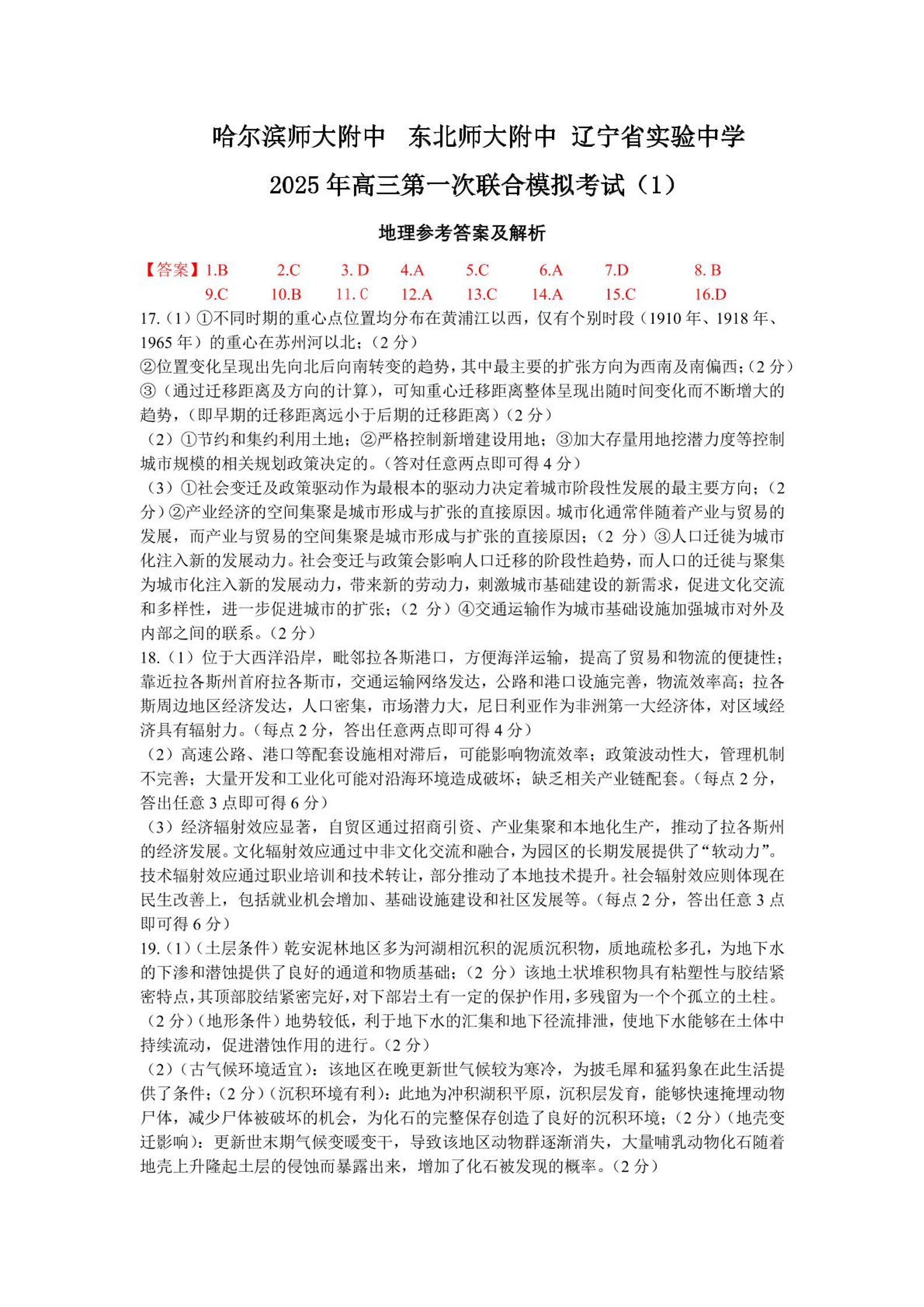 东北三省三校2024-2025学年下学期三月第一次联合模拟地理答案
