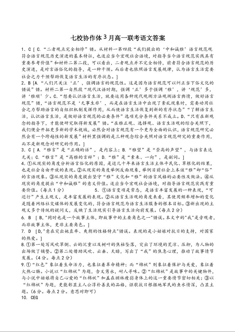 辽宁省七校协作体2024-2025学年下学期3月高一联考语文答案
