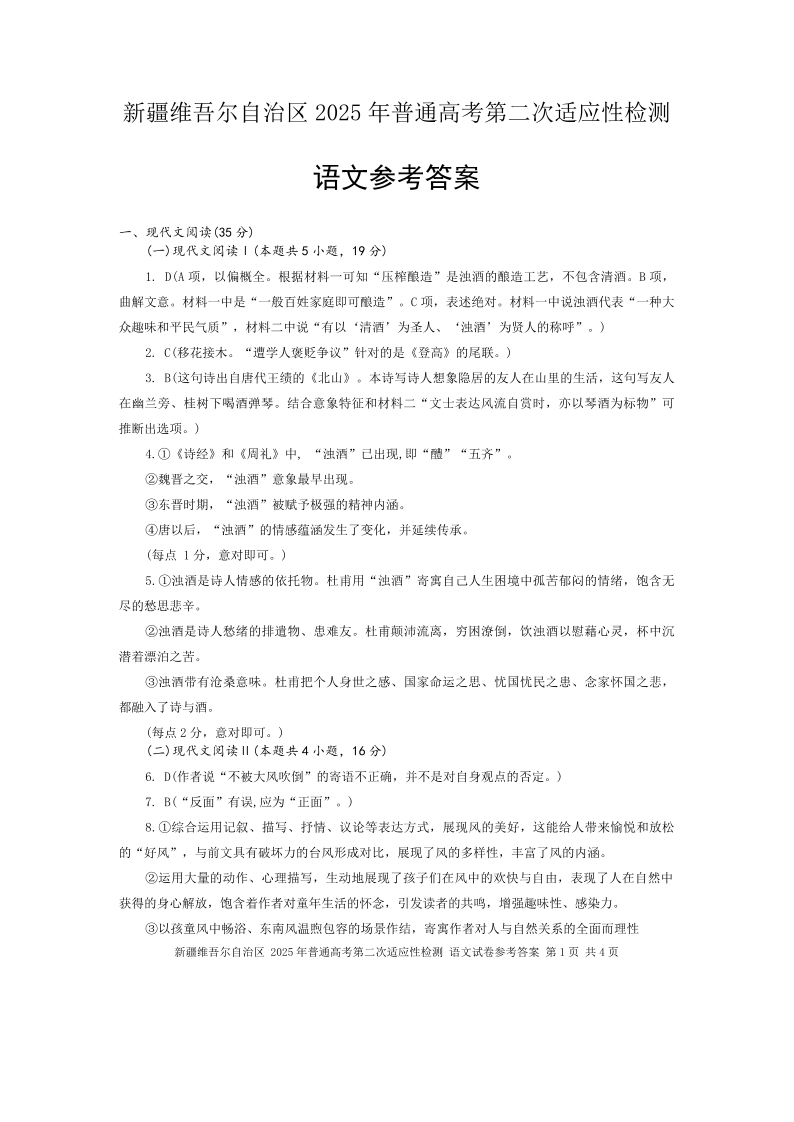 新疆维吾尔自治区2024-2025年普通高考第二次适应性检测(二模)语文答案