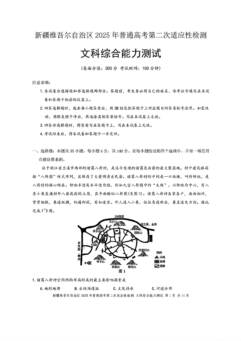 新疆维吾尔自治区2024-2025年普通高考第二次适应性检测(二模)文综+答案