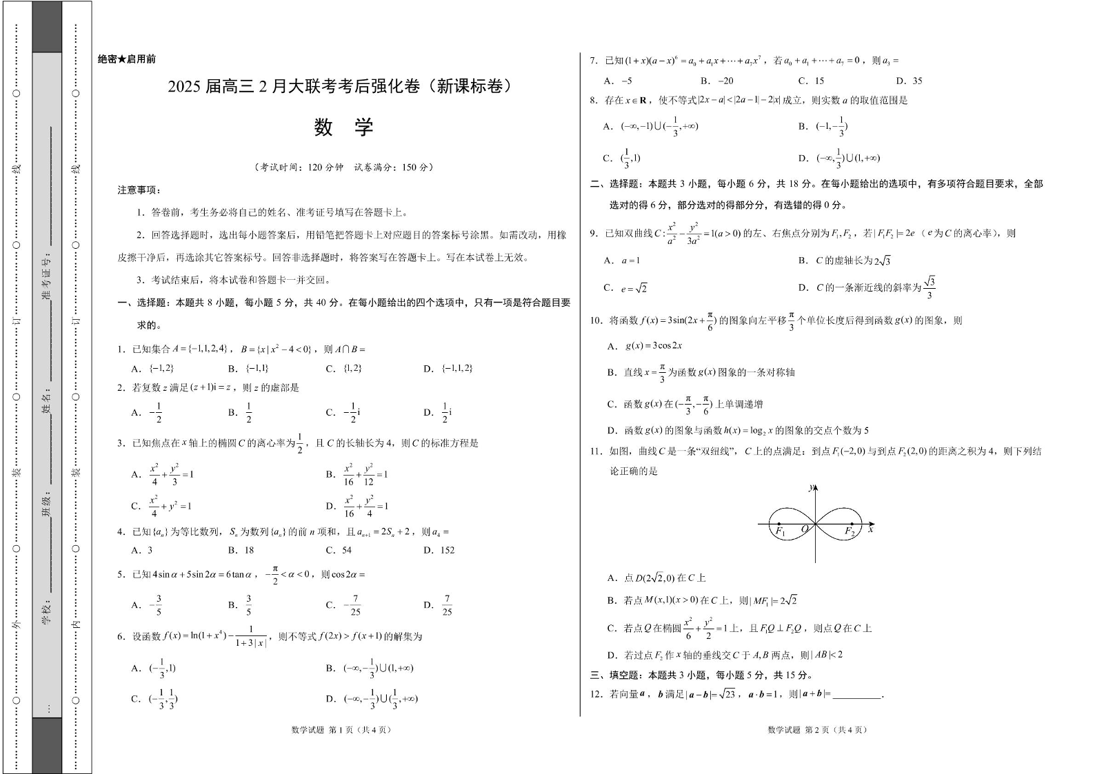 2024-2025学年下学期2月大联考考后强化考试数学