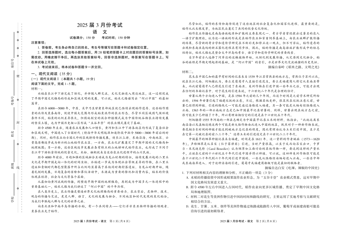 陕西省菁师联盟2024-2025学年下学期3月高三联考语文