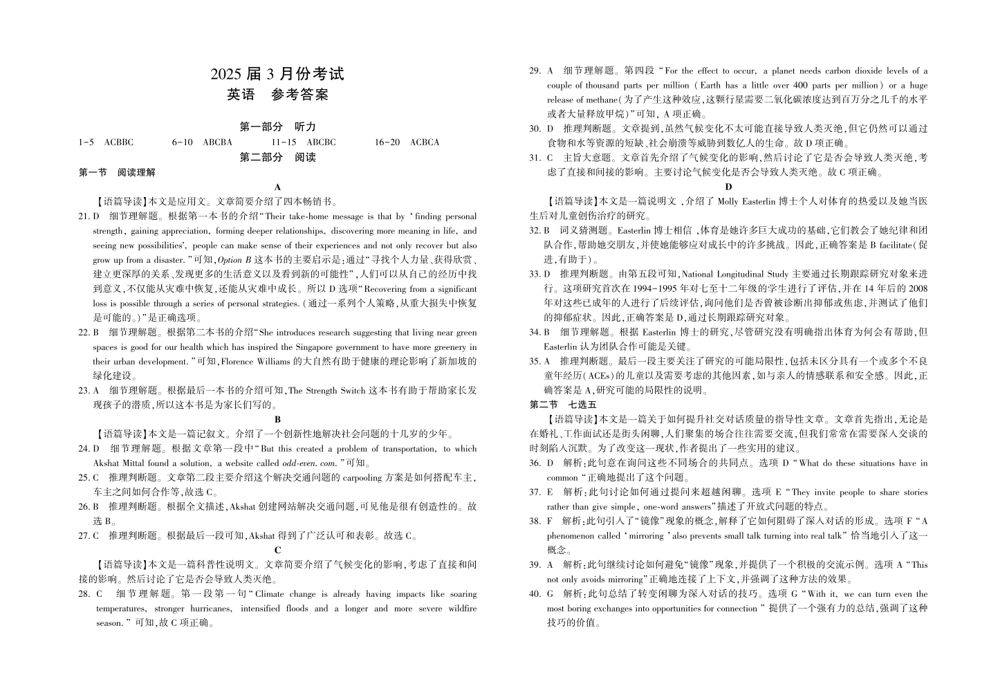 陕西省菁师联盟2024-2025学年下学期3月高三联考英语答案