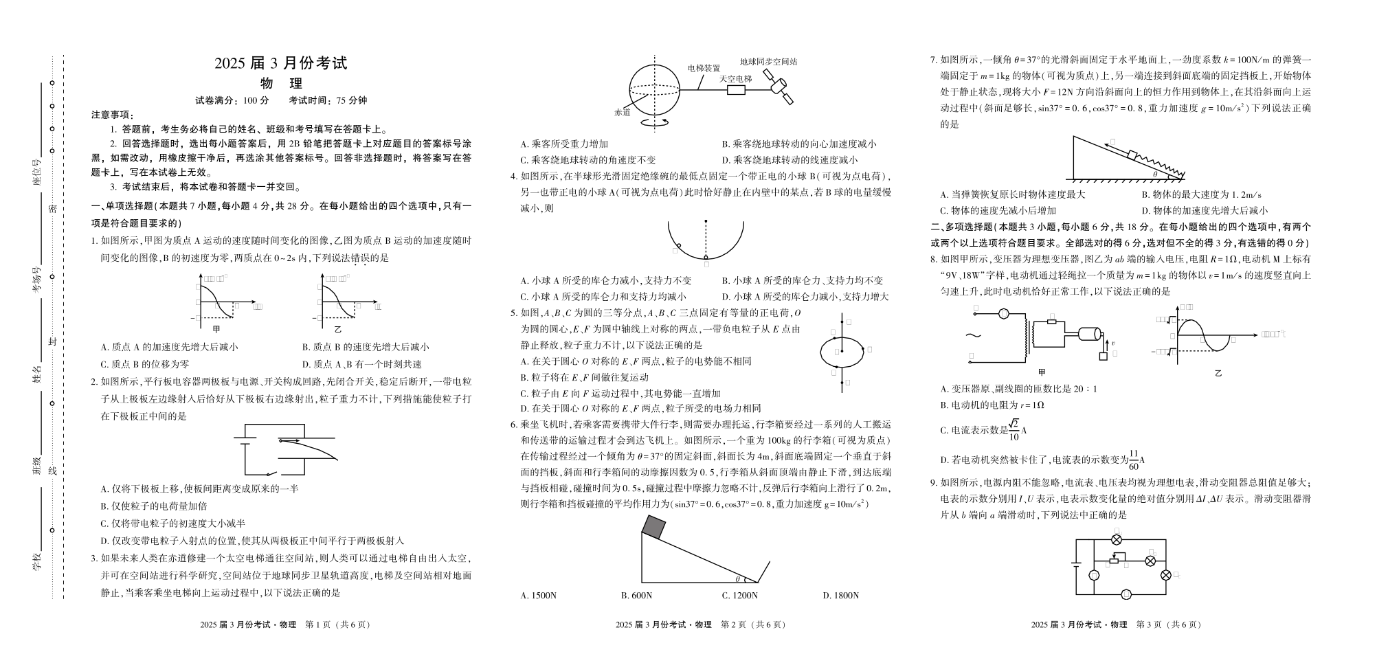 陕西省菁师联盟2024-2025学年下学期3月高三联考物理