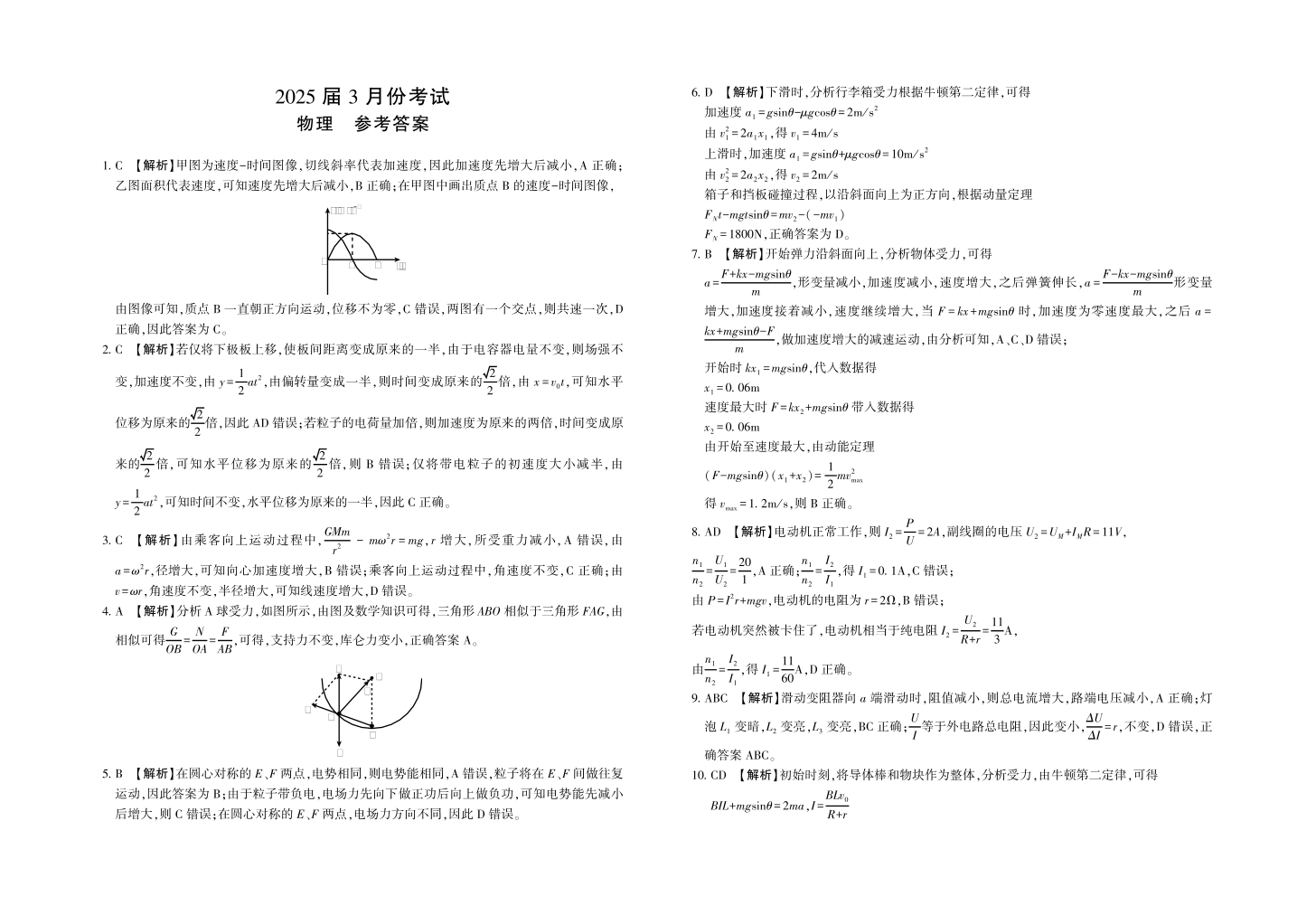 陕西省菁师联盟2024-2025学年下学期3月高三联考物理答案